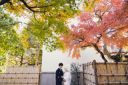 山本亭の魅力は邸宅内だけではなく、外のお庭もとても素敵です。この日はお天気にも恵まれ、秋の雲が二人を迎えてくれました。