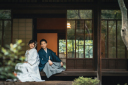 世界的にも人気な山本亭の日本庭園。お庭からダイナミックに映したその風景とおふたりの姿は日本らしい雰囲気満載のお写真に仕上がりました。