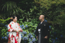 まずはおふたりのしっかりとしたお写真を撮影。白無垢と黒紋付は相性抜群です♪