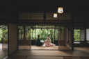 膝枕でくつろぐ様子を縁側で。リラックスしている風景を自然に残します。