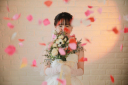 神秘的ながらもあたたかみもある1枚。祝福のフラワーシャワーが舞っています!