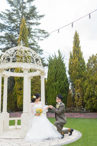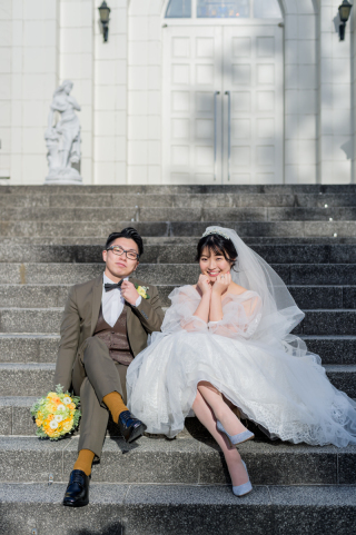 ロケーションではないですが、屋外での撮影だったので、周りに植物があり自然な写真が撮れました!和装の時は主に、木が一緒に写っていて、色打ち掛けが映える写真が多かったです! 洋装では、チャペルでの撮影と、和装と同じところでも撮影をしましたが、洋装の時はレンガや階段などまた和装とは違った雰囲気の写真を撮っていただきました。 移動なしでいろいろなパターンの写真が撮れるのはおすすめです。