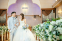 中世のヨーロッパを思わせるステンドガラスから差し込む柔らかな陽光から創り出される幻想的な空間での写真撮影は特別感があります