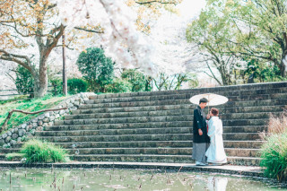 緑の中での写真は爽やかな光が印象的に、新世界はビビッドなカラーを活かしつつノスタルジックに撮って下さりました。逆光や、薄暗い路地などの難しい場所の写真もカッコよく仕上げてくださって、定番を抑えつつ、個性的な前撮り写真になっていて気に入っています。