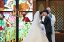 ウェディングドレスの撮影は定番のステンドグラスの教会で