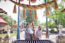 フォトウェディングで定番の撮影スポットとなった赤絨毯の螺旋階段