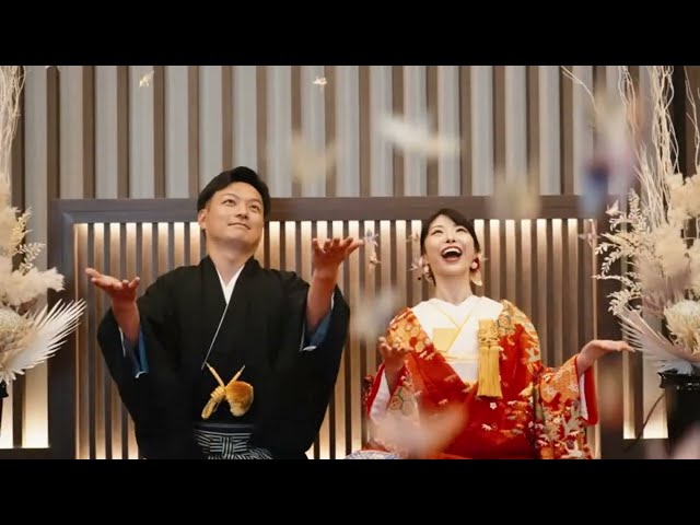 ステンドグラスの教会での洋装フォトと、和モダンな披露宴会場【縁-ENISHI-】での和装フォトを動画で撮影しました。