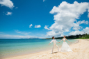 沖縄らしさがある、撮影グッズにてお持込の多いオリオンビール。お2人でかんぱーい!!