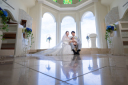 「岩の窓」の奥に広がる青い海が新婦様を一層引き立てます