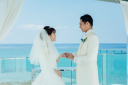 那覇スタジオでのフォトウェディング。かっちりお腕組みポーズからスタート♪