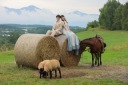 タイミングによって、牧草ロールに出会えます!お持ち込みくださった麦わら帽子がマッチしていて可愛いです!