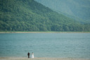 陽に照らされる道路。新郎様の背中を見つめる新婦様の表情が印象的でした。