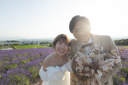 北海道ならではの広大なラベンダー畑で撮影。青空がきれいですね!