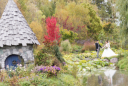 衣裳の着付けもたのしく噴水のある架け橋でのワンショット