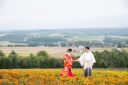 素敵なスポットやフォトグラファーとっておきの撮影ポイントなど、3カ所お選びいただけます。「やさしいロケーションフォト」ひまわりに囲まれたお二人*