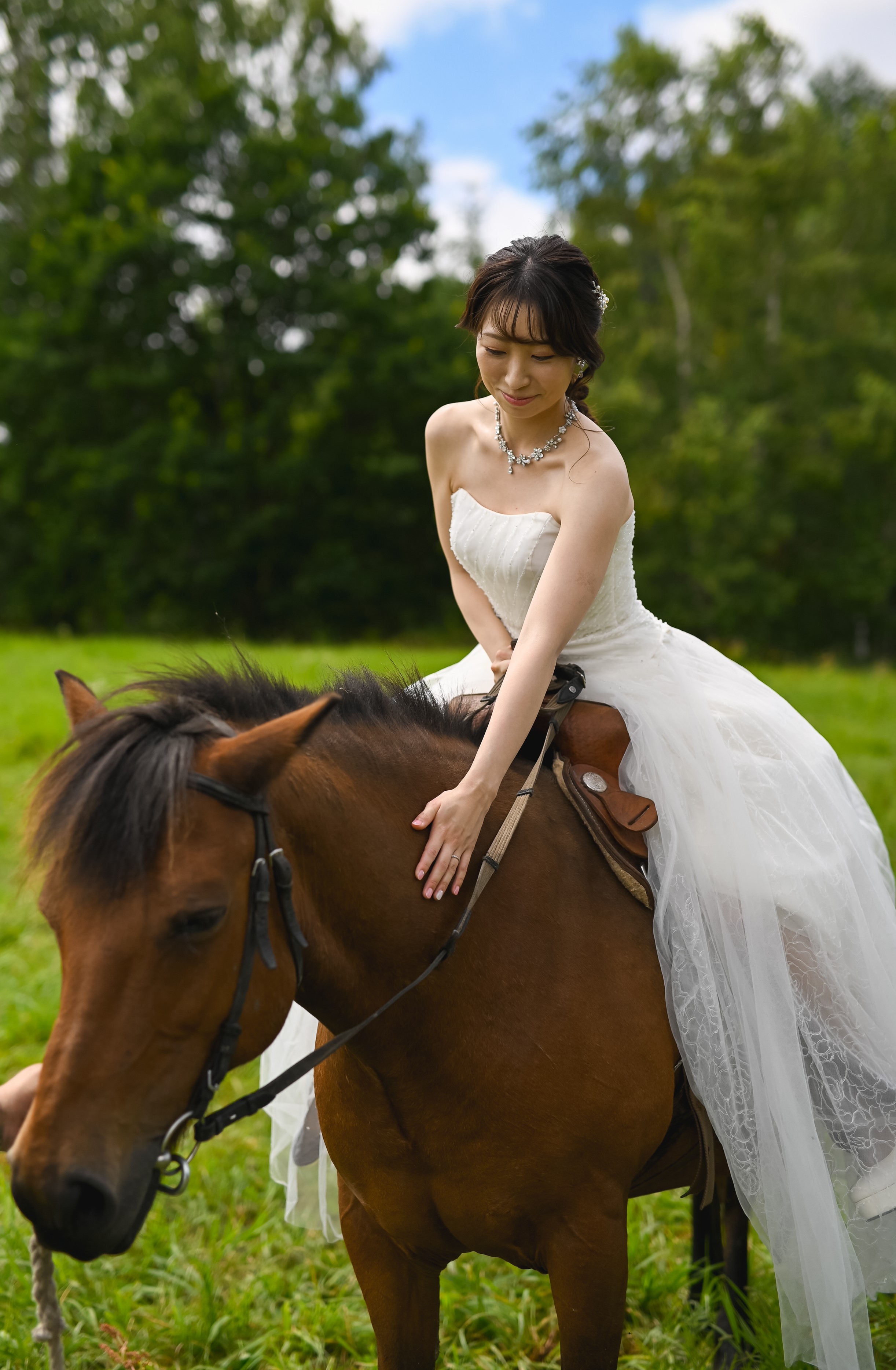 地域密着の丘のうえ、地元の契約農家や牧場との契約で馬や羊との撮影や冬場は犬ぞりなどのアトラクションでの撮影もセッティングいたします