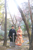 最後は和装で!!紅葉をバックに、、、お二人の素敵な笑顔です!