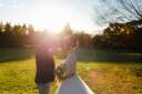 手をつないで二人でくるくる回っての一枚。たくさん動けるのがロケーションの強みです!