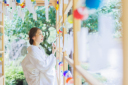 新婦様は、キラキラの木漏れ日が輝くグリーンを背景に。白のウェディングドレスにぴったりです♪