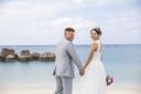 まるでデート中のような自然な1枚*お二人が選ばれたお衣装はとても海が似合うリゾートスタイル*