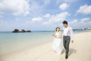 新郎様はちょっと休憩♪新婦様と透き通る沖縄の海を撮影!