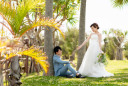 ビーチだけでなく、フカフカのグリーンの上に座ってのカット*とても素敵な雰囲気のおふたり◎