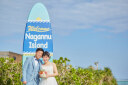 ビーチ撮影にやってきました!広大な青い海と白い砂浜を背景に見つめ合うおふたり♡