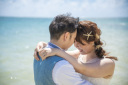 ヨロンブルーに囲まれた水中撮影は本島のビーチとはまた違った魅力満載!透明度の高いナガンヌ島の海が素敵なおふたりを包み込みます*