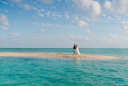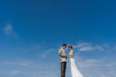 白い砂浜の上に座り手を取り合う様子は共に手を取り合い支え合いながら末永く続いていく未来を感じられるようです*