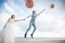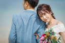百合ヶ浜に到着して、まずおふたりを迎えたのは真っ白な砂浜と透き通った海☆とても嬉しそうなおふたりを撮影しました♪