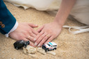 青い空、青い海、白い砂浜。そして、おふたりのイニシャルで120%のコンビネーション♪