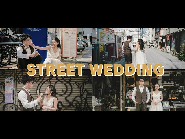 青い空、青い海とは違う沖縄のローカルな街並みで撮影するフォトウェディング