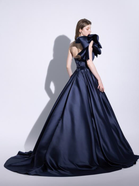 追加料金¥69.000/ワンショルダーのブラックドレス。ワンショルダーがゴージャスで華やかな重厚感ある一着です
