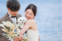 壮大に広がるビーチをバックに見つめ合うお二人の様子がいい雰囲気です