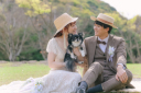 自然溢れる中で寄り添うお二人のフォトジェニックな一枚