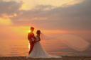 キラキラなビーチと夕日の中で凛とした新婦さまが奇麗です♡