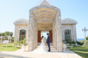 まっすぐな水平線と自然がお二人を包み込んで壮大なショット