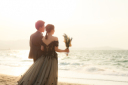 ブーケでお顔を隠して寄り添うロマンチックなショット♡