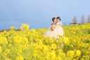 黄色いお花をつけたミモザがとても綺麗で白無垢姿を引き立ててくれますね