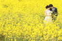 一面に広がる満開の花畑の中とっても素敵な笑顔のお二人