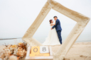 ビーチでの撮影では夕日の光がお二人を包みこんでキラキラしています