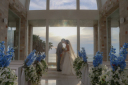 キラキラしたバックの中抱き合う姿は映画の中のようです
