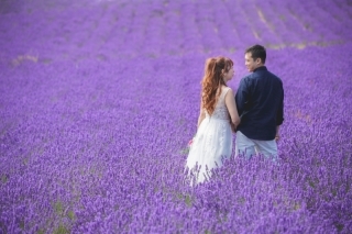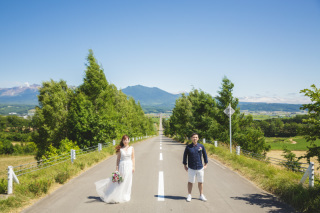 ラベンダー畑には早咲きと遅咲きがあるとのことで、事前に何度も日程のすり合わせをしてくれました。そのおかげで当日は濃い紫色の美しいラベンダーが満開で、本当に感動しました。 私はラベンダー畑に憧れていたので、こちらでは約2時間しっかり撮影をしました。 新郎新婦のソロショット、ラベンダー畑に埋もれた写真、白ラベンダー、日傘など小物を使用したショット、手を繋いで走るショットなど、細かな指示を出してくださったのでかなりバリエーションのある写真をとることができました! ラベンダーソフトを食べているシーンも撮れて大満足です。