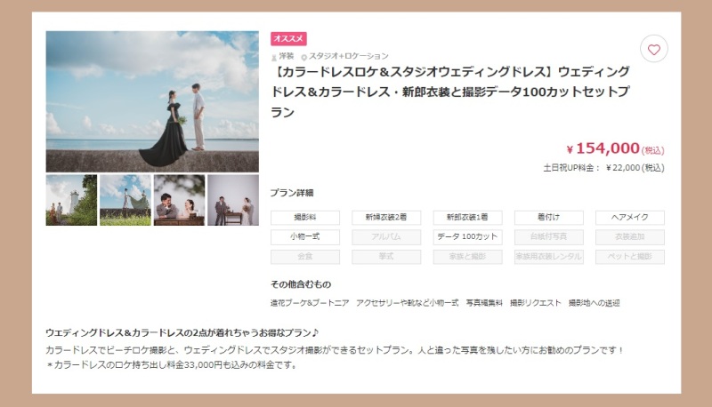 第3位はウェディングドレスでロケーション撮影、和装でスタジオ撮影ができるプランです!
