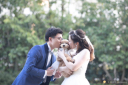 桜の中で見つめ合うお二人が、すごく素敵でした♡色打掛のお色もよく映えています♡