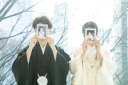 白い番傘を使用したショット。ONESTYLEでは赤と白の番傘をご用意しております*