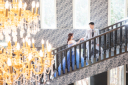 ちょっとしたシャッターのスペースも、お二人がいるとどこかシックでおしゃれな空間に・・・!サングラスも合わせて大人なかっこいい雰囲気を演出です!