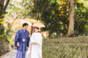 白無垢と色紋付袴、全身のお二人の姿もしっかり残しておきましょう♪その場の建物や景色、その瞬間の日差しを活かして、趣のある雰囲気をより一層引き出して撮影しました!