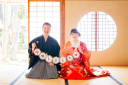 ご新婦様の赤色の色打掛に色を添えるのが番傘!まるで屋外で撮影をしているかのような自然光たっぷりなお写真も撮影させていただきます!