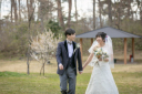 木々に囲まれる古風な庭園で、しっかりと手を携えるお二人の姿が映えますね。和やかで愛らしいお二人♡季節によって異なる葉の色を考えながら衣装を選ぶのもオススメです!